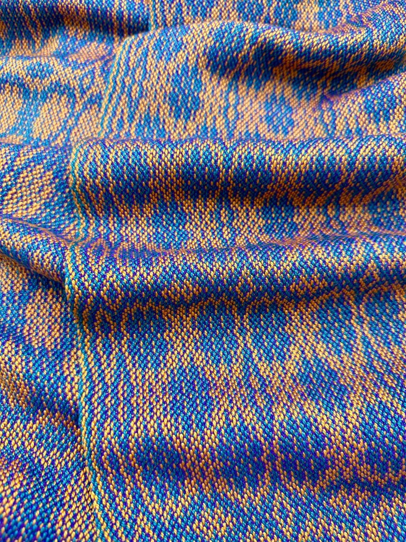 Silk Scarf is approximately 8.75" by 72", including the Double Weave hem. Weave Structure is Jin (aka 'turned taquete') on 4 shafts.