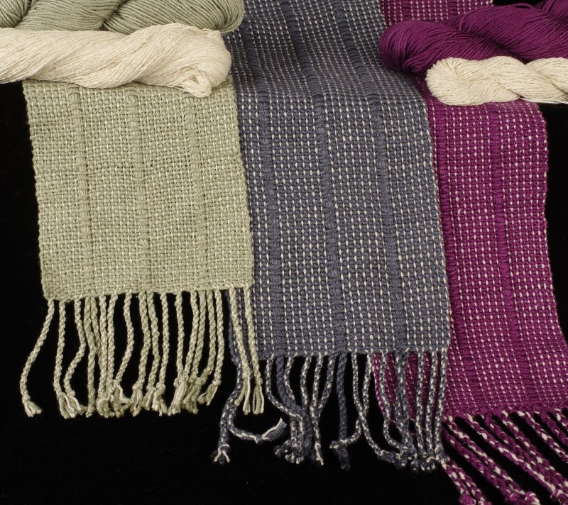 Our most popular rigid heddle scarf kits are both designed by the amazing Peg MacMorris. We couldn't decide which to offer, so we decided to supply the instructions for BOTH "Ribbed Stripes" AND "Big Plaid." That way you can decide which scarf to weave, when you are ready to warp your loom.